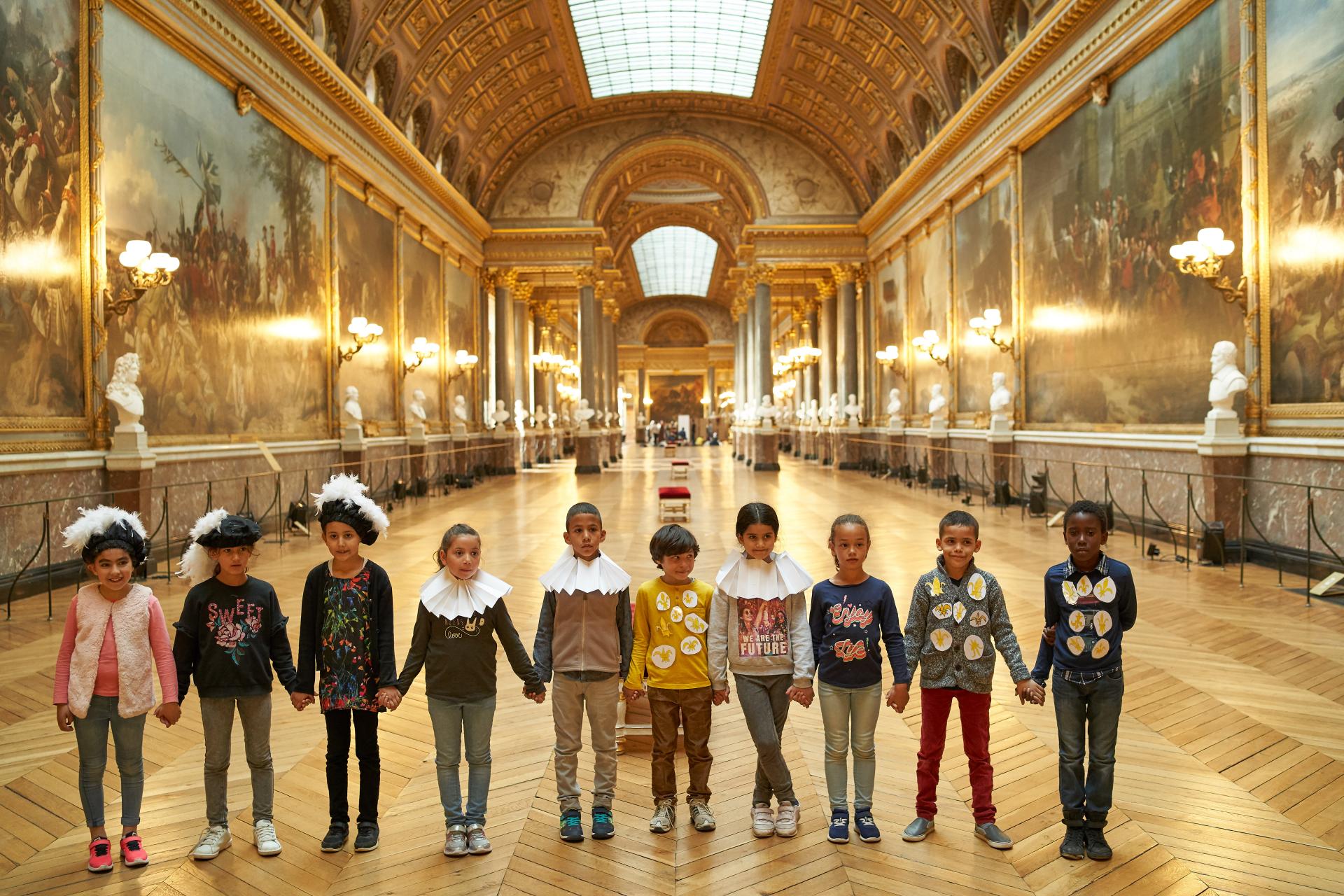 Le château de Versailles a rejoint en 2020 le dispositif des Enfants conférenciers© initié par Christophe Blanc, conseiller pédagogique et docteur en Sciences de l'éducation, il y a une douzaine d'années. L'objectif de ce dispositif consiste à ce que des élèves, de différents niveaux, deviennent passeurs de patrimoine auprès de leurs pairs, en s'appropriant les collections du musée.