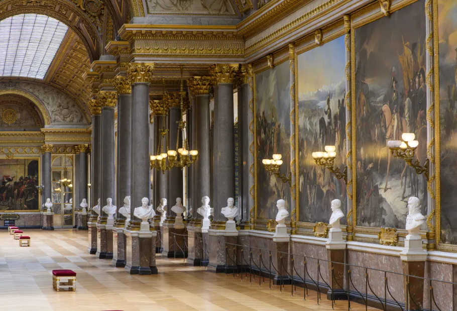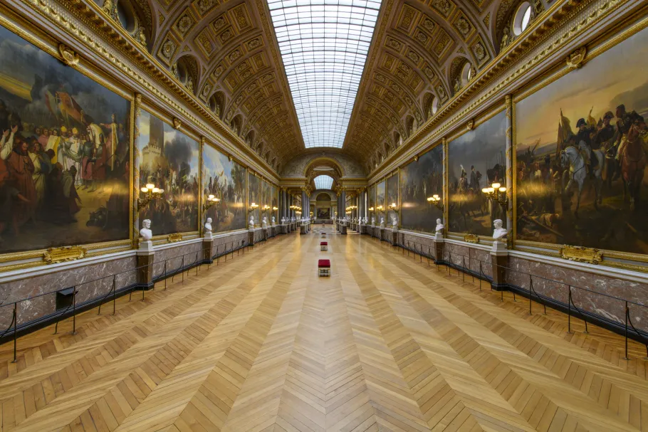 Avec ses trente-trois tableaux représentant « toutes les gloires de la France », la galerie des Batailles s’inscrit dans le parcours historique pensé par Louis-Philippe. Impressionnante par ses dimensions, elle occupe la quasi-totalité de l’aile du Midi.