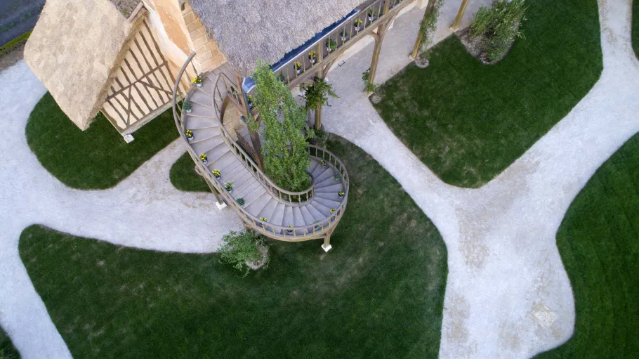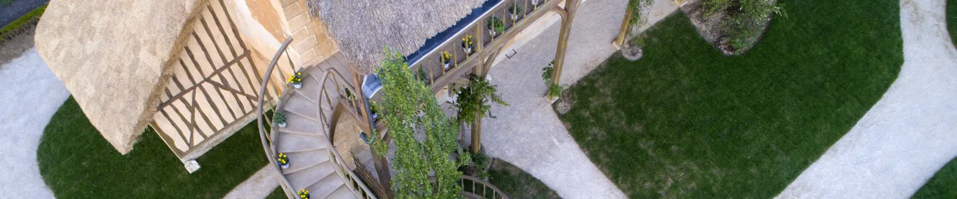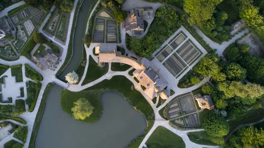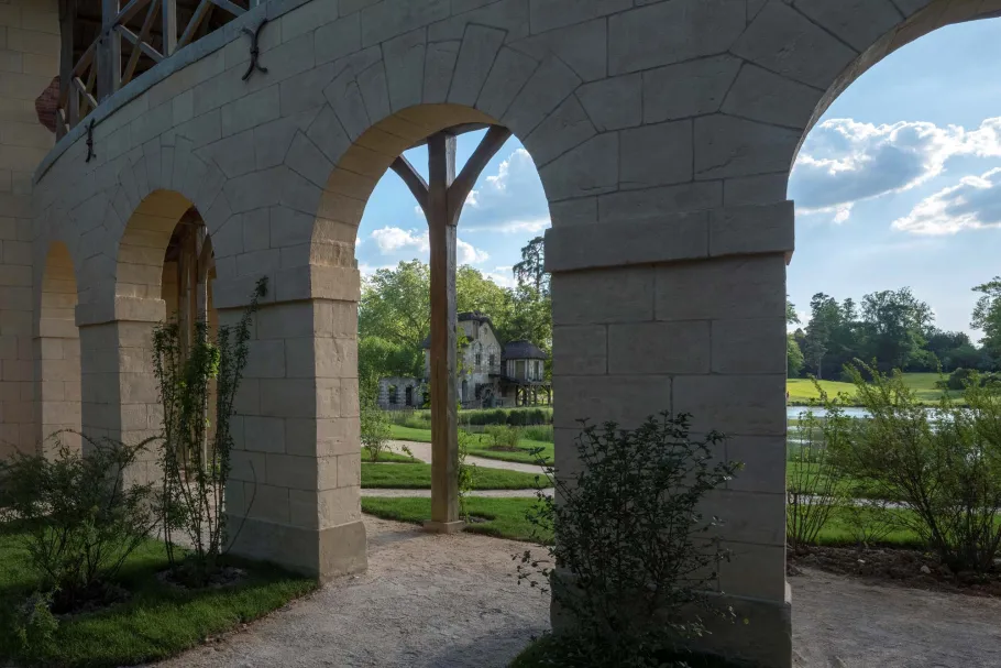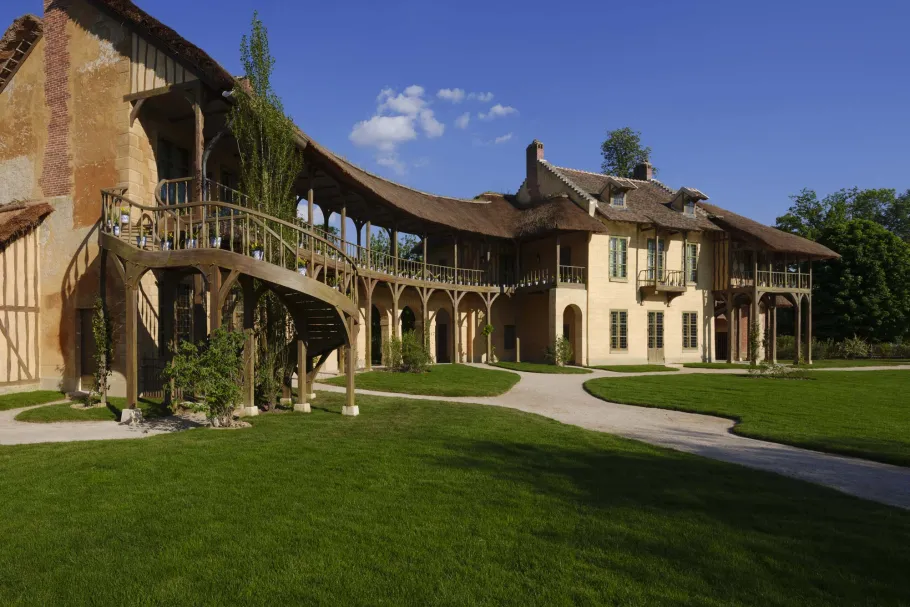 Inspiré des villages normands, le Hameau de la Reine a été construit par Richard Mique à la demande de Marie-Antoinette. Il se compose d’un lac entouré de plusieurs constructions aux toits de chaume : maisons, laiterie, boudoir. Véritable écrin de verdure, des potagers et une vigne servent de décor à ces édifices.