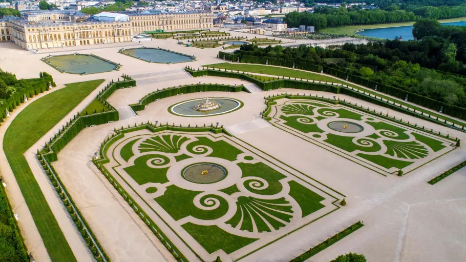 Orientés à l’ouest, le parterre d’Eau et la Terrasse introduisent la Grande Perspective, paysage classé au patrimoine mondial de l’UNESCO. Leur proximité avec le Château permet de mêler espaces intérieurs et espaces extérieurs.