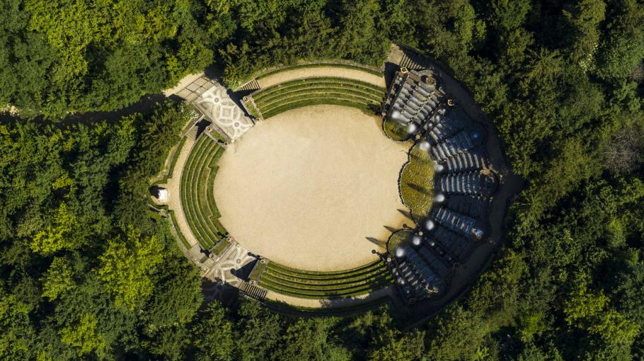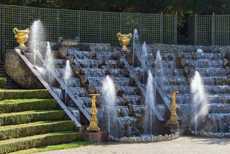 Aussi appelé « Bosquet des Rocailles » en raison des pierres de meulières et des coquillages exotiques sur lesquels l’eau ruisselle, le Bosquet de la salle de Bal, aménagé par André Le Nôtre au temps de Louis XIV, captive par sa scénographie saisissante.
