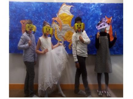 Nous avons choisi les deux animaux suivants : le dragon et le chien . C’est pour cela que nous avons créé une fresque et des masques avec ces animaux. On a rajouté le renard car la fresque a aussi servi à une autre classe de l'école qui a fait le même atelier que nous . Puis, nous avons imaginé que nous allions à un bal organisé par Jean de La Fontaine au château de Versailles et nous avons mis notre plus belle tenue pour cet événement !