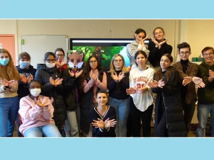 «Du bout des doigts» est un petit film s’adressant aux enfants à partir de la crèche. Ecrit et mis en scène par les élèves de 2e CAP Accompagnant Educatif Petite Enfance, il a été conçu comme un premier chef-d’œuvre professionnel. Adossé à un parcours riche de découvertes, de rencontres et de pratiques (ateliers au château de Versailles et avec une formatrice Signes2mains), le film propose une adaptation en communication gestuelle associée à la parole de la fable « Le corbeau et le renard » de Jean de La Fontaine. Il témoigne de l’intention de contribuer à l’éveil de l’esprit critique des tout-petits par les jeux entre réalité et fiction et les interpellations face caméra.
