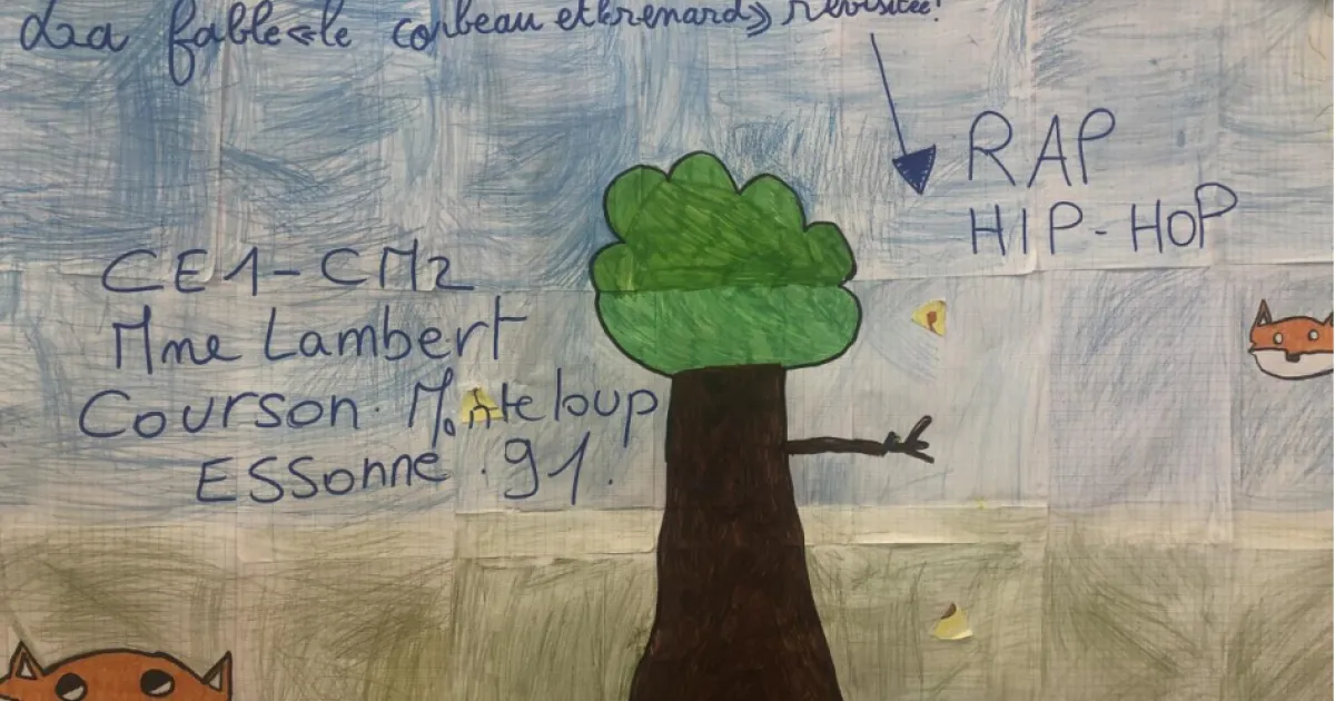 Notre choix s’est porté sur une des fables les plus connues de La Fontaine à savoir « Le corbeau et le renard ». Les élèves ont été réparti en 4 groupes. La fable a donc été coupée en 4 parties. L’objectif était de lire, dire, chanter la fable sur fond de rap ; la danser à la manière du Hip Hop et l’illustrer.