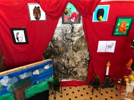 travaillé à une galerie de portraits que nous avons mis en scène. Nous avons créé des masques, des sculptures, des tableaux, des collages et nous avons installé notre galerie d’art dans le couloir qui mène à notre salle d’art.