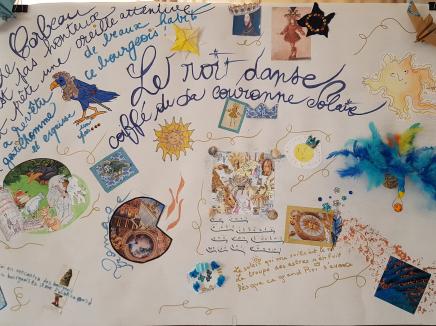 Les bleus : les bleus et le bronze doré, thème principal : Le Roi danse, coiffé de sa couronne solaire. Le corbeau n’est pas honteux et prête une oreille attentive, il a revêtu de beaux habits de gentilhomme ce bourgeois et esquisse un pas pour imiter en gestes et voix celui qu’il admire, son Roi …et laisse tomber…vous connaissez la suite ?