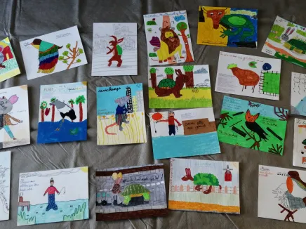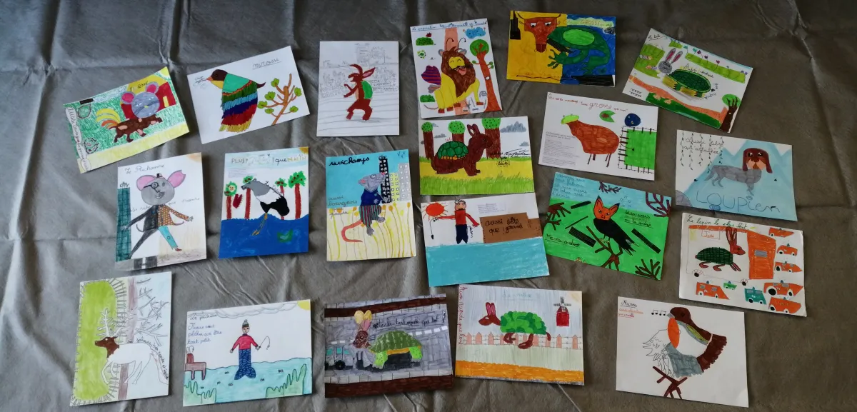 Nous avons pris les différents animaux de quelques fables de la Fontaine afin de n’en créer qu’un seul, hybride au niveau des caractéristiques physiques et comportementales. Nous lui avons trouvé un nom, un adage et lui avons créé un environnement propre.