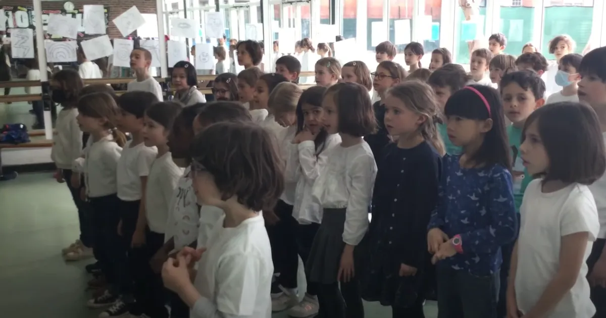 Interprétation de 3 classes : Un chant " La salsa de la grenouille" issu du Swing de la Fontaine de Pierre Gérard Verny et une chorégraphie : La cigale et la fourmi.