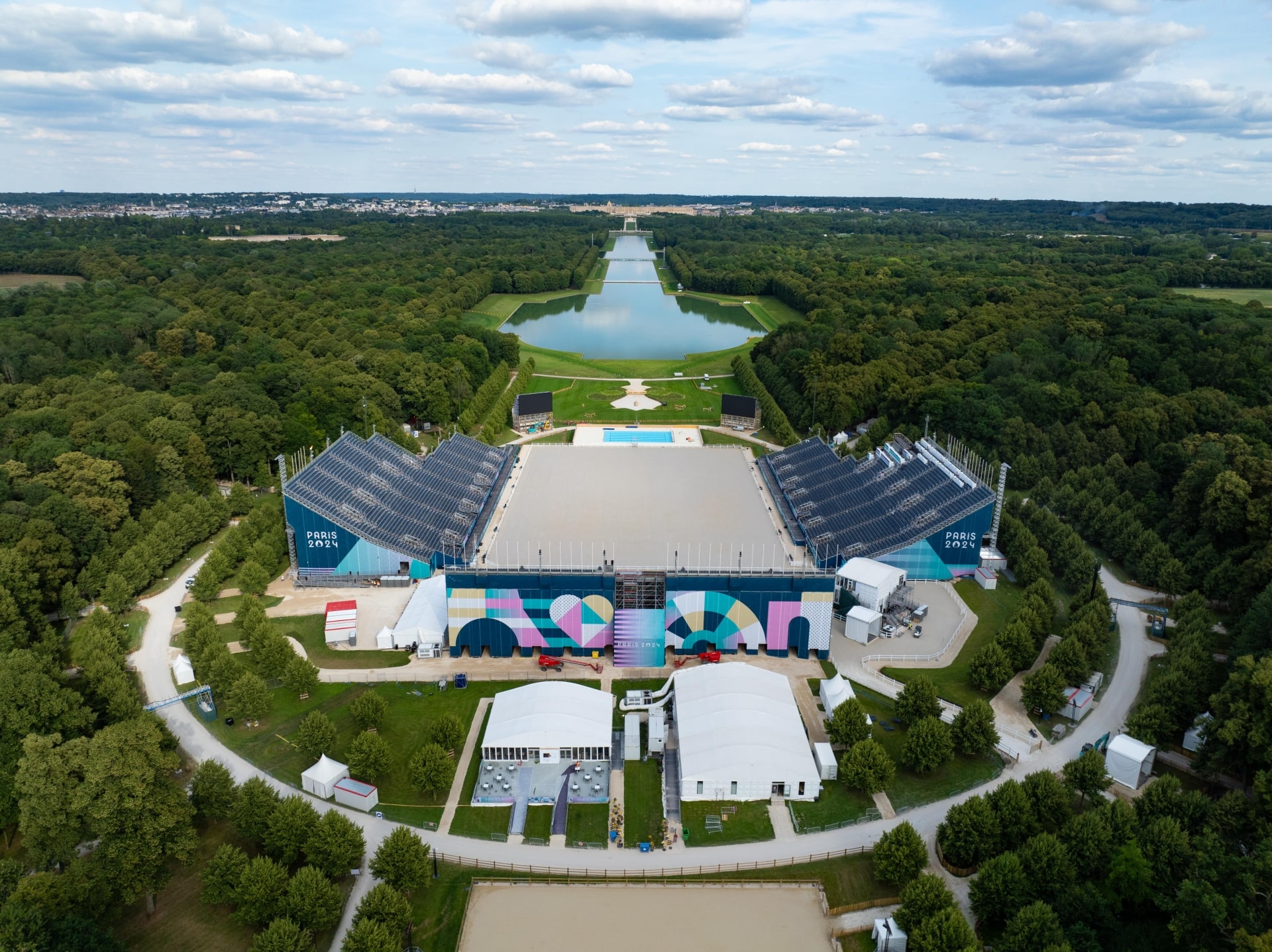 A l’Étoile royale, à l’ouest du Grand Canal, des aménagements temporaires ont ainsi été réalisés. D’importants travaux ont été menés pour aplanir le terrain qui sera reformé à l’identique à l’issue des JO, et une carrière de 8 250 m² avec des gradins en forme de « U » ouverts sur le Grand Canal, y ont été installés pour accueillir 16 000 spectateurs. Quelque 40 000 spectateurs sont en revanche attendus pour assister à l'épreuve de cross-country qui se déroulera dans le parc du Château, avec la traversée exceptionnelle du Grand Canal via des passerelles en bois.