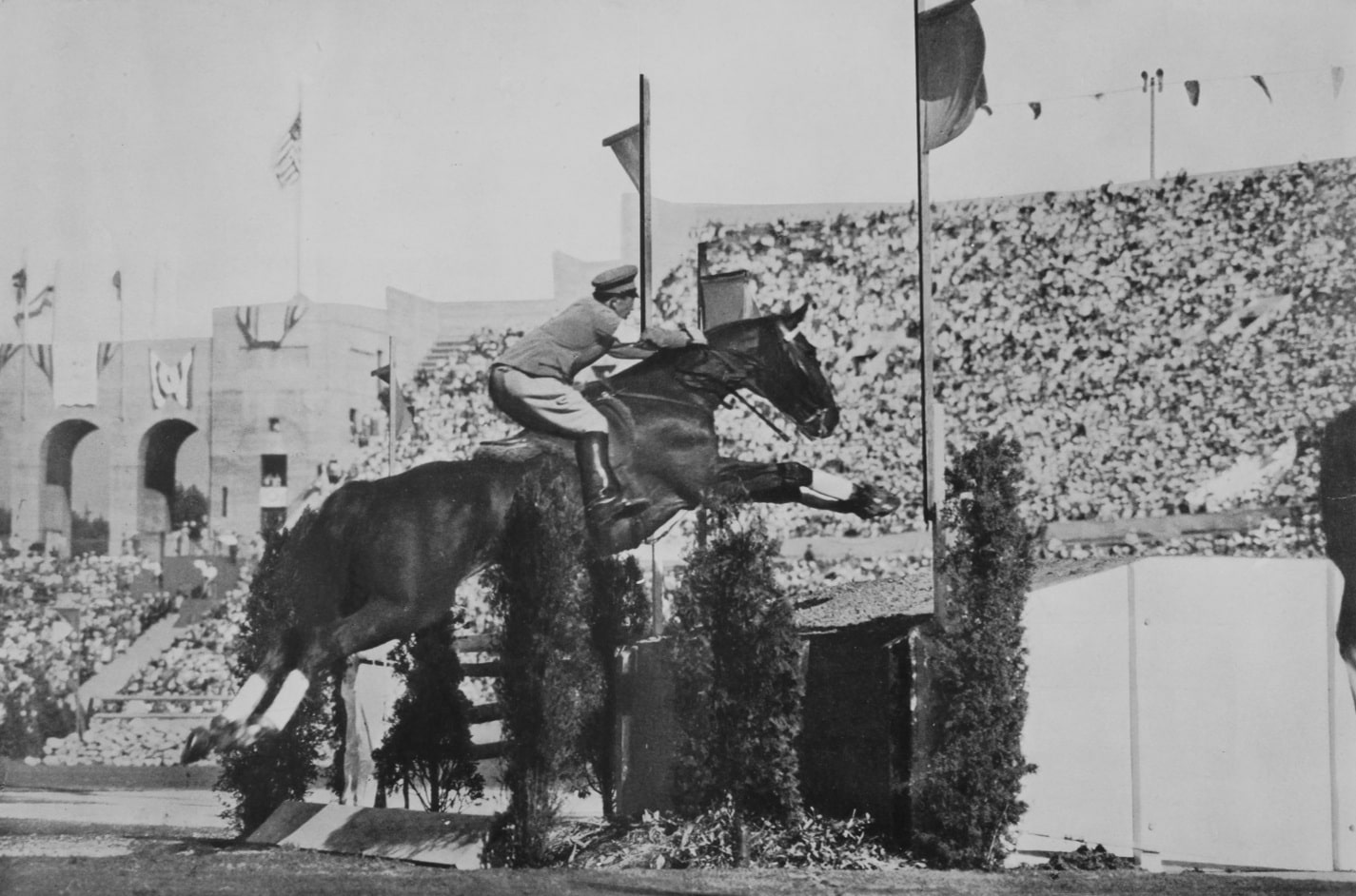 Pour la première fois, les épreuves équestres se déroulent hors d’Europe, à Los Angeles (Etats-Unis), impliquant de faire voyager les chevaux de longues heures. Les équipes de France et de Suède ont ainsi opté pour une traversée en bateau jusqu’à New York City puis en train jusqu’en Californie. L’équipe du Pays-Bas avait fait équiper son bateau d’un tapis roulant inventé expressément pour permettre aux chevaux de se dégourdir les pattes durant le transport. C’est le Japonais Takeichi Nishi qui gagne l’or en Concours de Saut d'Obstacles, une première et unique victoire pour le Japon en équitation aux JO.