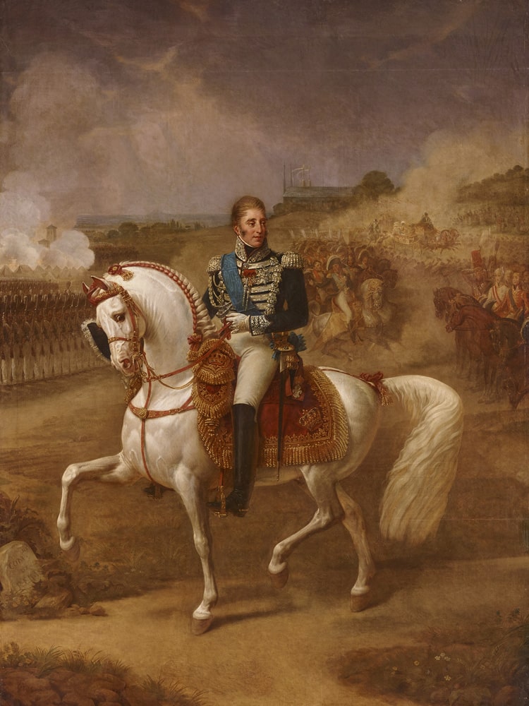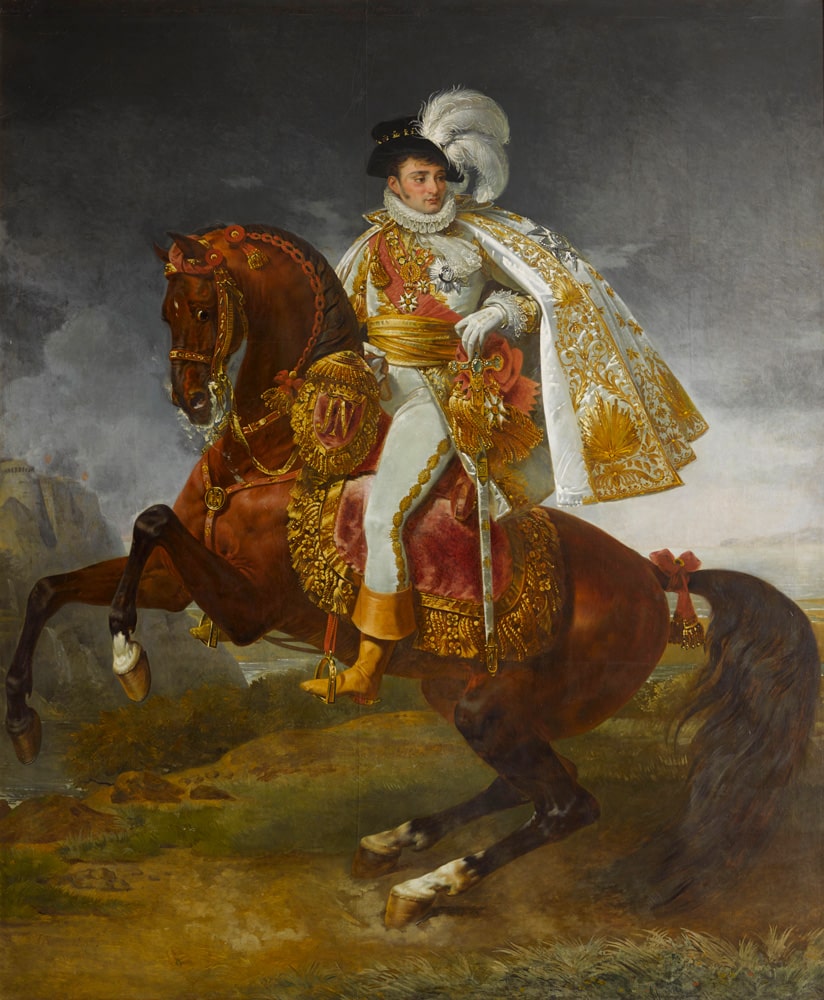 Ce tableau a été réalisé par Antoine-Jean Gros – peintre intime de la famille Bonaparte – pour le frère de Napoléon Ier, Jérôme Bonaparte, roi de Westphalie, figuré à cheval. Il a pour pendant un portrait équestre de son épouse Catherine de Wurtemberg.