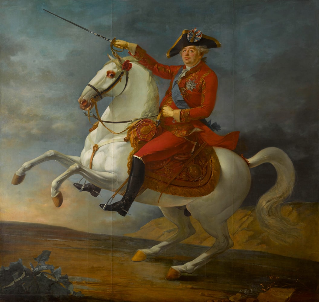 Si les sports équestres et le dressage apparaissent en Grèce antique, l’art de monter à cheval s’exprime véritablement à la Renaissance, avec l’émergence des premières académies d’équitation en Italie, puis en France dès la fin du XVIème siècle. Comme la danse, l’escrime ou les lettres, l’équitation est enseignée systématiquement et étudiée en théorie dans ces écoles où se développe une pratique toute en légèreté, précision et élégance. Les souverains y sont initiés dès leur plus jeune âge par les meilleurs écuyers car l’excellence de leur pratique du cheval se veut un symbole de leur aptitude au bon gouvernement. Relayé par l’art ou la littérature, le roi cavalier est ainsi l’une des composantes de l’identité royale. De même, certaines reines ont été représentées sur leur fidèle destrier.
