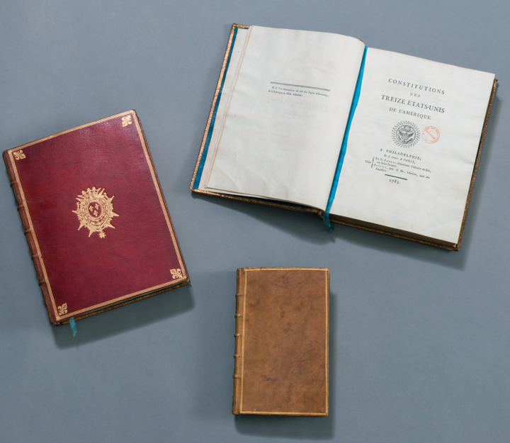 Ces constitutions traduites en français, “la langue la plus parlée en Europe”, par Louis-Alexandre, duc de La Rochefoucauld d’Anville, font partie de la stratégie de Franklin pour informer au mieux les cours européennes de ce qu’il se passe aux Amériques. Elles sont ainsi distribuées en deux exemplaires dans toutes les ambassades. Des exemplaires reliés en maroquin rouge sont offerts au Roi, à la Reine, au comte et à la comtesse de Provence et au comte et la comtesse d’Artois. Chacun de ces exemplaires porte les armes de la personne qui les reçoit.