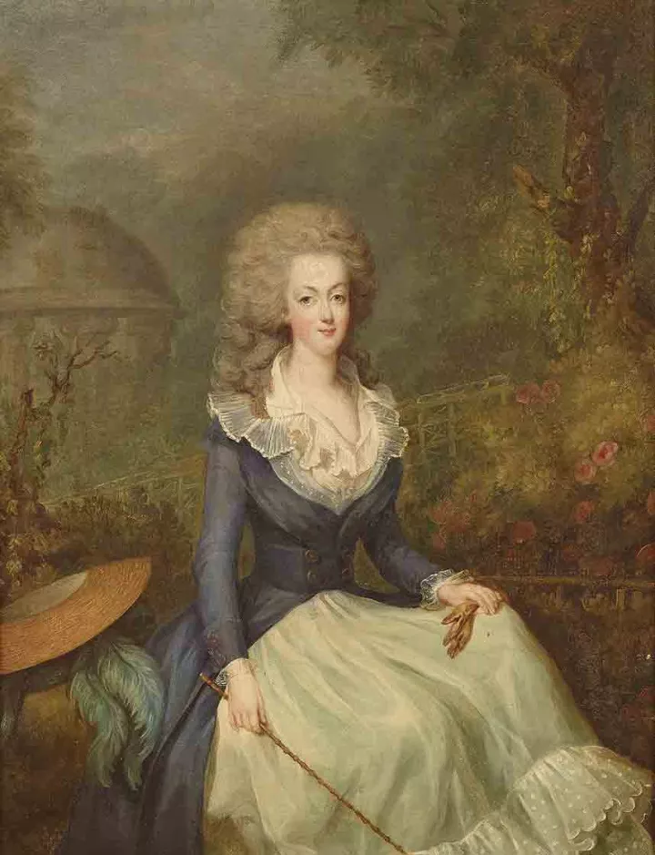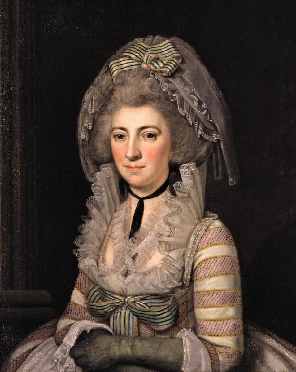 Réalisé à Rome entre 1785 et 1786 par un artiste inconnu, ce portait d’Hester Thrale a été peint près de 10 ans après sa visite à Versailles. Depuis, devenue veuve en 1781 elle est unie avec Gabriele Piozzi, le maître de musique de sa fille, une union qui fit scandale. Ce tableau est donc celui d’une femme dynamique et indépendante : on remarque même une petite cicatrice à la commissure droite de ses lèvres, souvenir d’une chute de cheval.