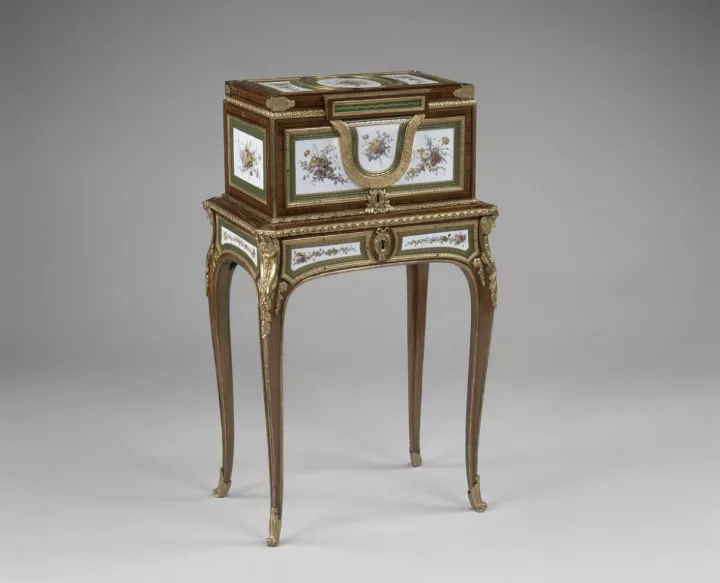 Comme tous les visiteurs, Mrs Thrale a pu admirer le serre-bijoux offert à la dauphine en 1770 et placé dans l’alcôve de la chambre de la reine.