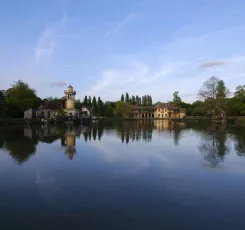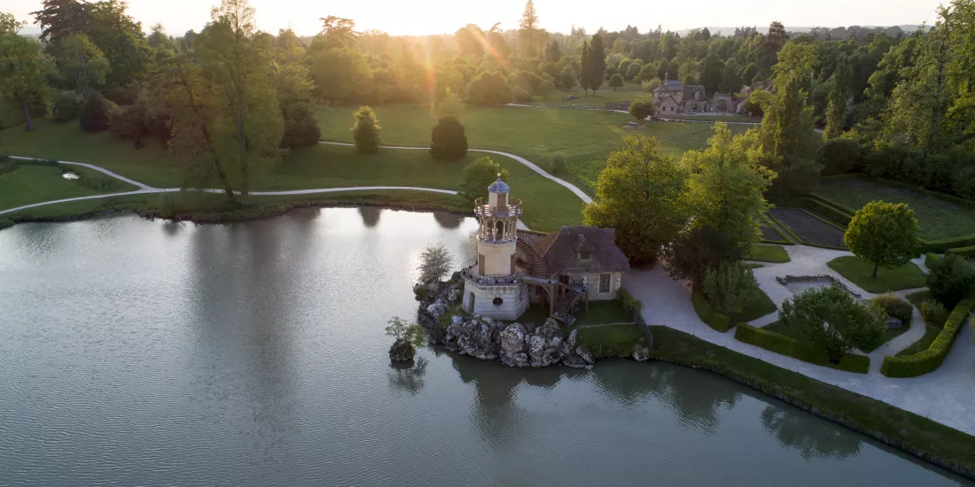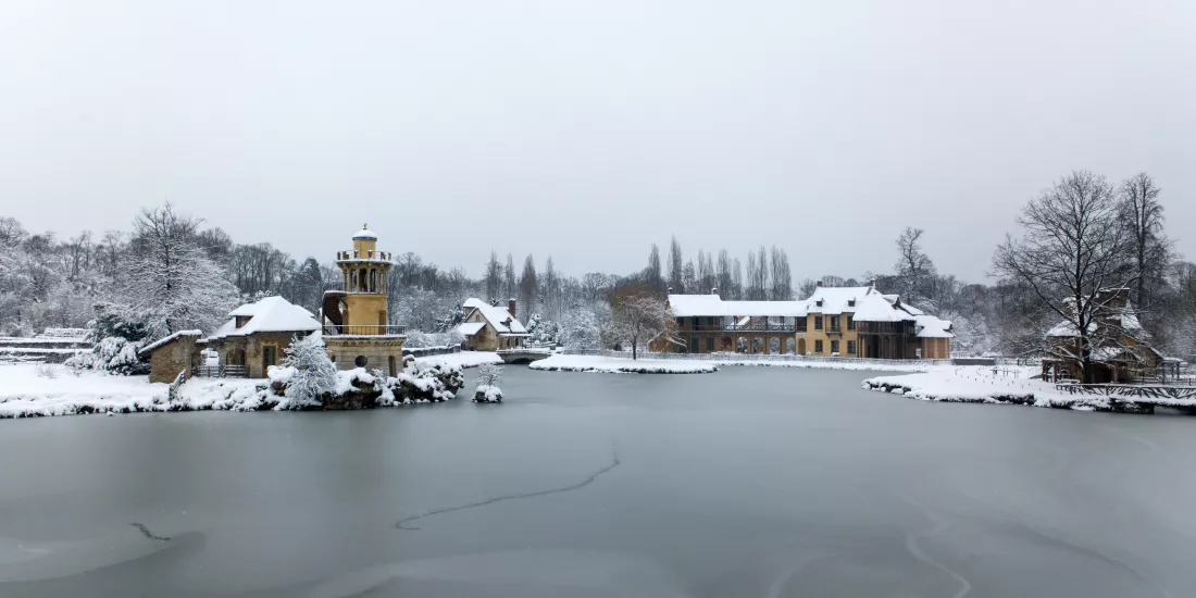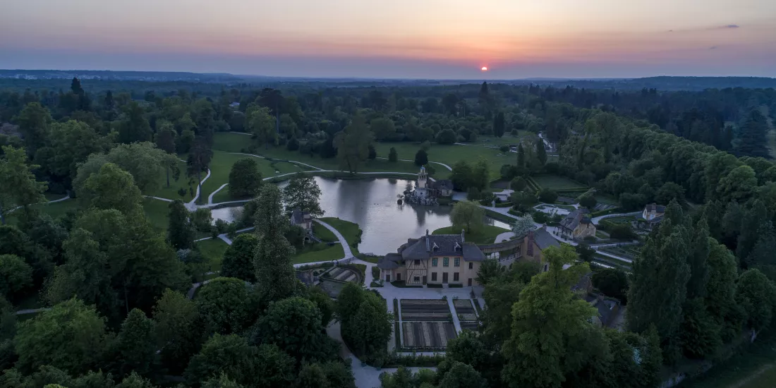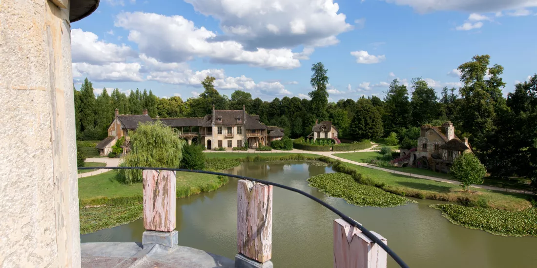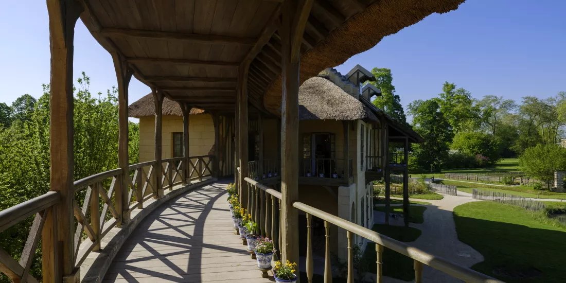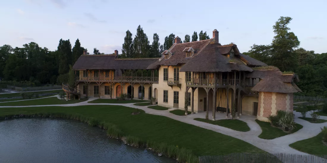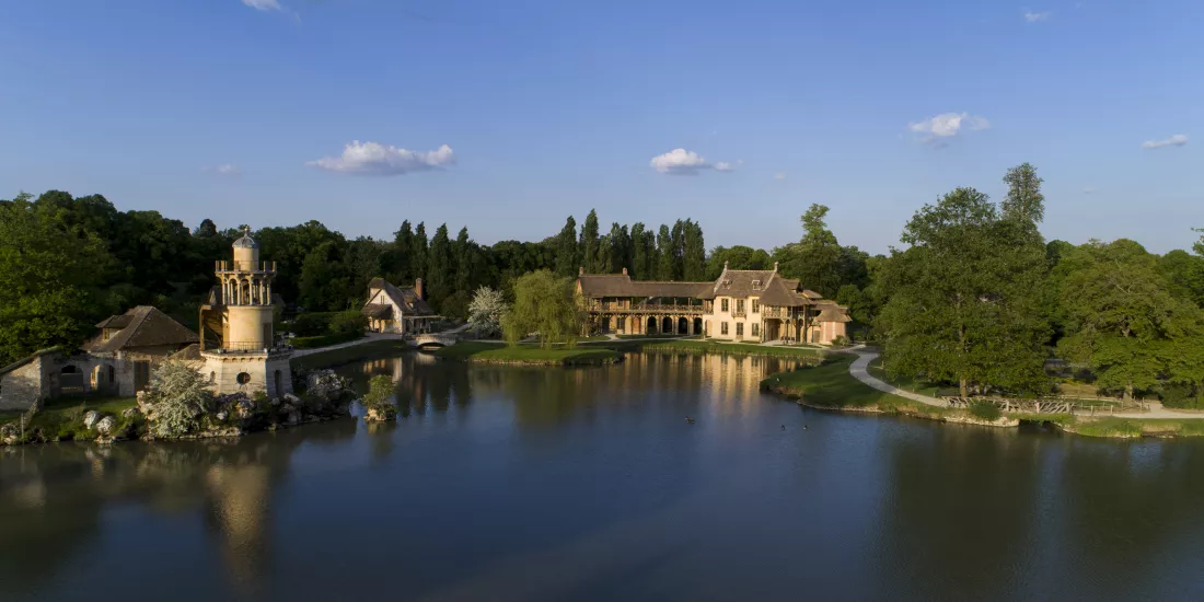 En 1783, la Reine Marie-Antoinette décide d’étendre la partie nord des jardins de Trianon. Elle commande à l’architecte Richard Mique la construction du Hameau, un village autour d’un lac. Composé de dix fabriques, ces petites maisons à l’aspect rustique, le Hameau s’inspire des dessins d’architecture pittoresque du peintre Hubert Robert. Il s’inscrit dans le goût du retour à la nature, grande tendance de la fin du XVIIIème siècle.