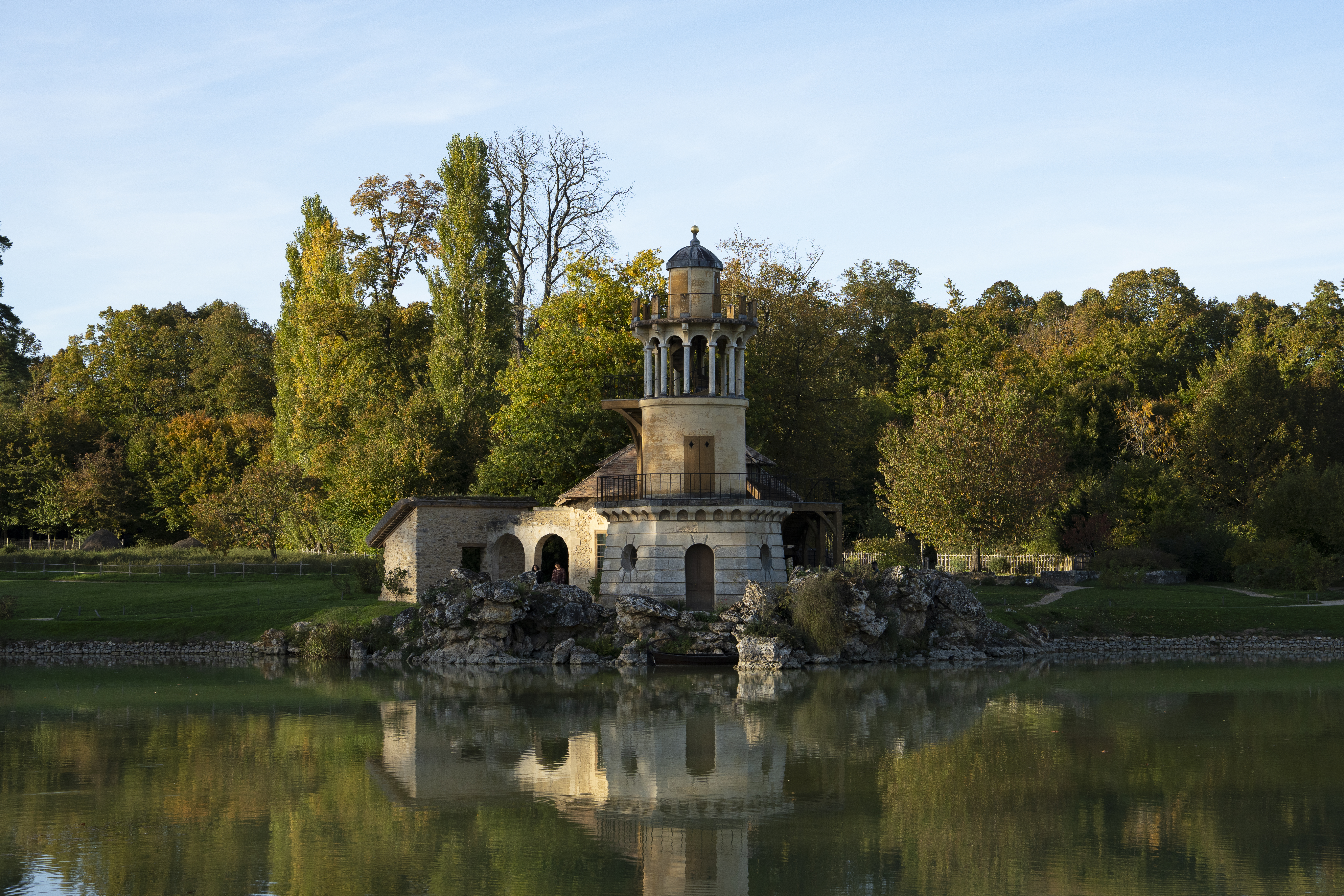 Au fond du domaine, le long des rives du lac, se dressent les chaumières du Hameau construit par Richard Mique pour Marie-Antoinette. Survivantes d'une époque brillante et mouvementée, elles illustrent le goût de la Reine pour le charme de la vie…