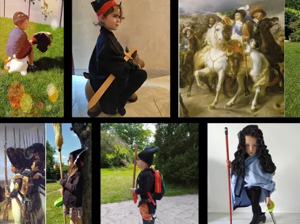 Suite à la visite guidée de la galerie des Batailles fin février, nous avons étudié les détails et les personnages de « La bataille d'Iéna » et de « La bataille de Lens ». Chaque enfant a essayé de reconstituer un des personnages du tableau chez lui, pendant le confinement, en reproduisant les costumes, l'attitude et les émotions. Un tableau collectif a été produit sur place, reproduisant l'ambiance de la bataille historique !