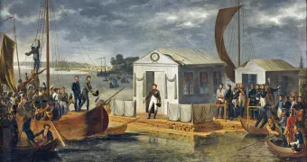Découvrez les grands événements du XIXe à travers la collection de tableaux conservés dans les salles de l'Attique du Nord qui abritent une partie des collections des Galeries Historiques créées par Louis-Philippe en 1837. Dans cette vidéo pédagogique, la peinture du Transbordement des cendres de Napoléon Ier à bord de la Belle Poule, 15 octobre 1840 peinte par Eugène Isabey en 1842 est dévoilée et cet épisode si particulier de l'histoire napoléonienne est décrypté.
