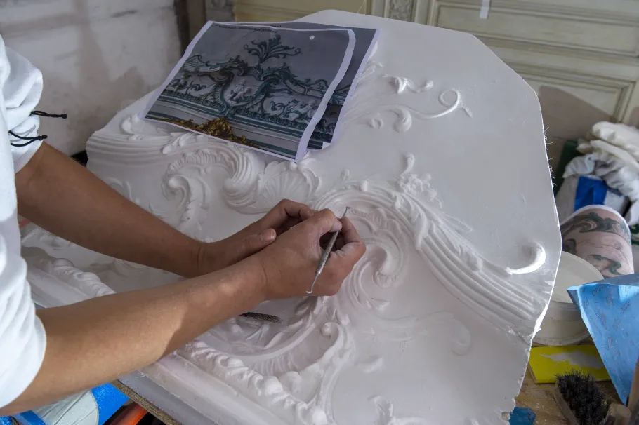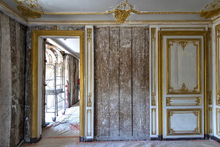 L’appartement de madame du Barry était vétuste, et nécessitait donc une nouvelle campagne de travaux et une restauration plus poussée en atelier. Afin de retrouver tout son charme et son harmonie, ce chantier de grande ampleur a mobilisé de nombreux métiers d’art et savoir-faire.