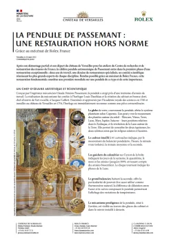 Inscrit sur chaque montre Oyster, le terme « Perpetual » représente bien plus qu’un mot sur un cadran, c’est une philosophie qui incarne la vision et les valeurs de la marque, une recherche perpétuelle de l’excellence que le fondateur Hans Wilsdorf a transmise à l’entreprise. Inspirée par ses montres conçues pour durer, Rolex s’engage à long terme pour les générations futures. Animée de cette volonté de contribuer à la préservation et à la transmission d’un patrimoine culturel unique inscrit dans l’histoire, Rolex France, mécène de la restauration du cabinet d’angle du Roi, est tout particulièrement heureuse d’engager une seconde action de mécénat avec le château de Versailles pour la restauration de la pendule de Passemant.