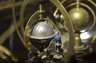 - Le globe de verre, couronnant la pendule, abrite le système planétaire selon Copernic. L’on peut y voir le mouvement des planètes autour du soleil – Mercure, Vénus, Terre, Lune, Mars, Jupiter, Saturne – leurs positions relatives dans le Zodiaque, et la révolution de la Lune autour de la Terre. Elle permet de connaître les deux équinoxes, les deux solstices ainsi que les éclipses solaires et lunaires.