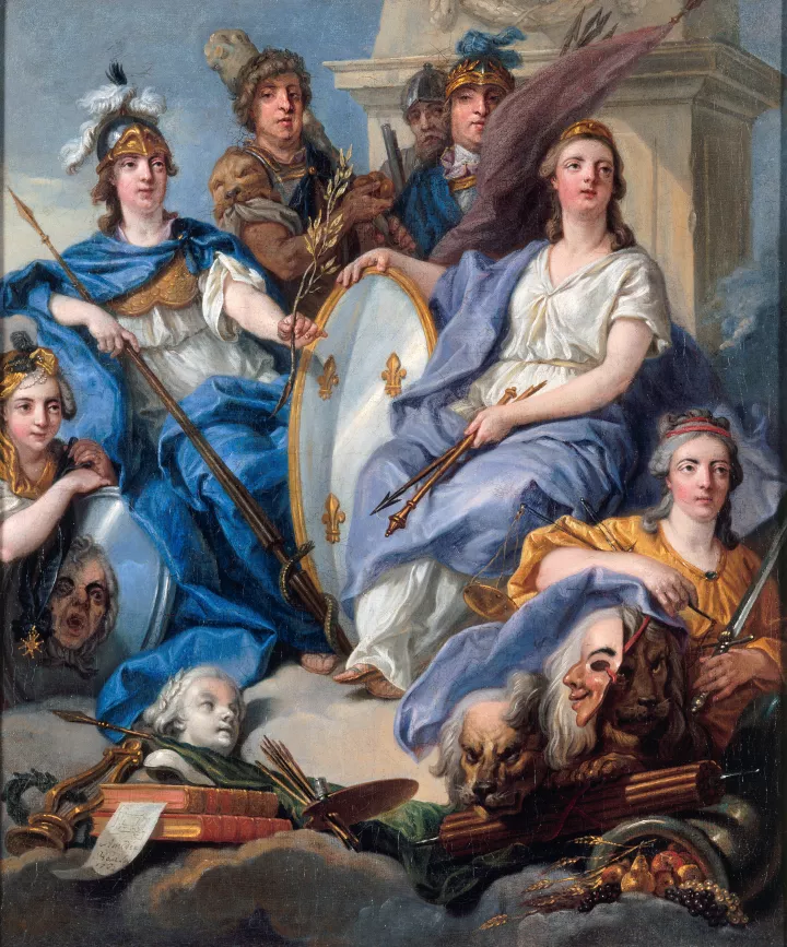 Né en 1710 à Versailles, Louis XV est le fils du duc de Bourgogne et de Marie-Adélaïde de Savoie, ainsi que l’arrière-petit-fils de Louis XIV. Dauphin à la mort de son père, il devient roi à seulement cinq ans à la mort du Roi Soleil, le 1er septembre 1715.