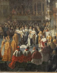 Le 25 octobre 1722, Louis XV se fait sacrer Roi à la cathédrale de Reims. Le tableau d'Emile Signol immortalise cet évènement plusieurs années plus tard à la demande du Roi Louis-Philippe pour Versailles.