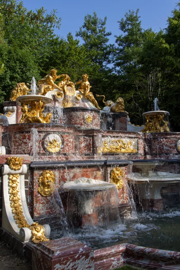 Construit en 1702 sur les plans de Jules Hardouin-Mansart et les directives de Louis XIV, le Buffet d’Eau est une composition magistrale qui n’a pas son pareil dans tous les jardins et bosquets de Versailles. Récemment restaurée, la fontaine du Buffet d'eau retrouve aujourd'hui toute sa magnificence et offre à nouveau ces jeux d'eau aux visiteurs.