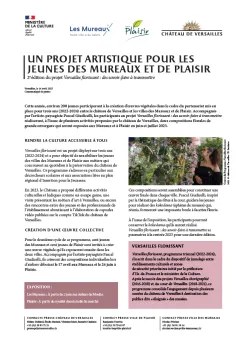 Après le succès des projets Versailles chorégraphié (2016-2018) et Au cœur de Versailles (2018-2021), ce programme consolide l'engagement depuis plusieurs années du château de Versailles à destination des publics dits « éloignés » des musées.