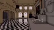 Le salon des Nobles de la Reine (état actuel): Cette modélisation 3D du salon du Grand Appartement de la Reine, dans son état actuel, a surtout été l’occasion d’expérimenter la création d’un modèle acoustique virtuel afin d’étudier l’influence des salles sur les techniques de jeu sur des instruments des XVIIe et XVIIIe siècles (Projet EVAA_Ver). Après la réalisation de mesures acoustiques, des musiciens sont venus y enregistrer. La vidéo regroupe ces deux modélisations.