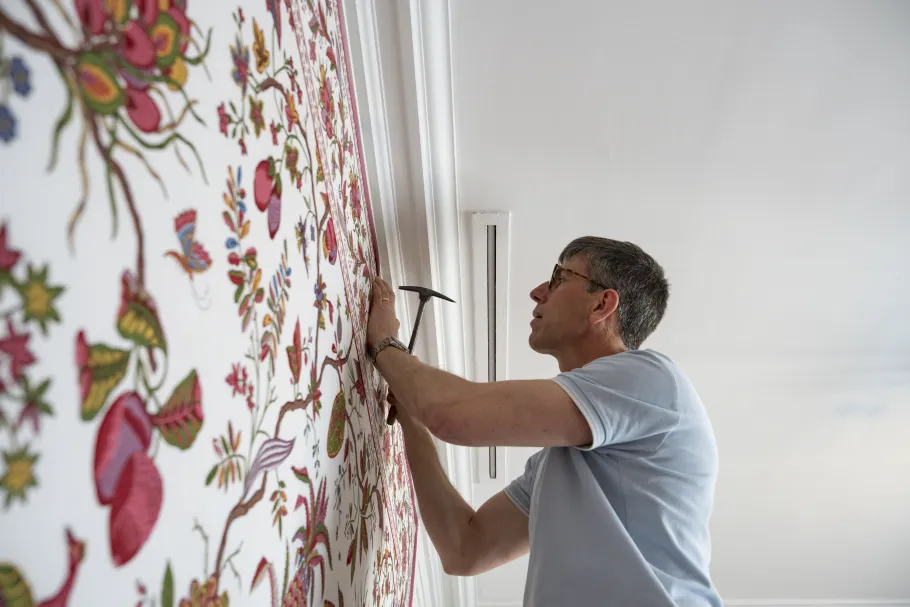 L'élément majeur de ce projet de réouverture est la restauration des toiles de Jouy réalisées selon la technique traditionnelle au cadre plat, mettant en valeur la préservation des métiers d'art grâce au mécénat et au savoir-faire de la Maison Pierre Frey. Les visiteurs peuvent découvrir dans les pièces "à la reine" la toile au Grand Ananas, l'une des plus belles productions de la Manufacture de Jouy et dans le cabinet du Billard, un merveilleux satin blanc broché, au motif floral que l'on retrouve aussi sur les sièges et canapés livrés pour cette pièce.