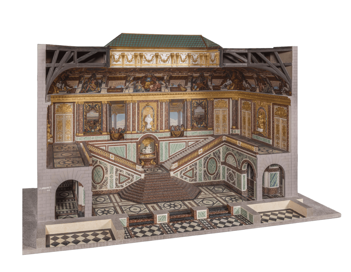 Ancien escalier monumental construit et décoré entre 1672 et 1676. Devenu théâtre en 1748 sous le règne de Louis XV, il est détruit en 1752 au profit des appartements privés du roi.