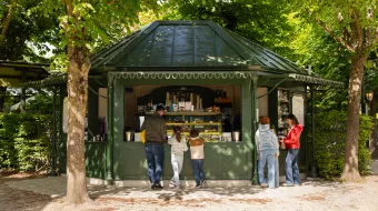 Entre le Parc et le Domaine de Marie-Antoinette, un comptoir de vente à emporter Angelina propose une offre sucrée et salée à déguster en terrasse. Venez déguster le célèbre chocolat chaud Angelina avec votre groupe.