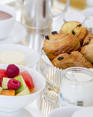 Le restaurant s’adresse également aux lève-tôt avec un petit-déjeuner complet. Idéal pour être le premier à pénétrer dans le Château.