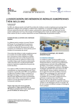 L’Association des résidences royales européennes permet à ses membres de travailler ensemble, d’échanger leurs connaissances et leurs expériences en matière de conservation et de mise en valeur du patrimoine, afin d’en faire profiter les millions de visiteurs qu’ils accueillent chaque année. Formation professionnelle, création de partenariats, activités promotionnelles, projets de coopération et publications font partie des activités du réseau.