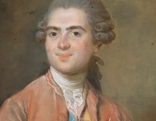 Dès 1776, la réputation d’Elisabeth Vigée Le Brun est bien établie. Membre de l’Académie de Saint-Luc depuis 1774, elle est saluée pour ses portraits ressemblants et flatteurs, érigeant leurs modèles au rang de représentants d’une société aristocratique « galante et insouciante » (Pierre de Nolhac, Madame Vigée-Lebrun, peintre de Marie-Antoinette). Elle utilise notamment des papiers teintés sur toile, enduits pour retenir les couches de pastel, et travaille au doigt ou à l’estompe avant d’appliquer des hachures colorées, les rehaussant de blanc ou en y superposant, par hachure ou aplat, des tons plus chauds ou plus froids. Elle produit ainsi des effets lumineux que l’on pourrait presque qualifier d’impressionnistes. On trouve dans ce portrait de Monsieur la technique de déconstruction de la couleur en hachures de teintes différentes, chaudes ou froides, qui caractérise quelques portraits d’hommes de la même époque.
