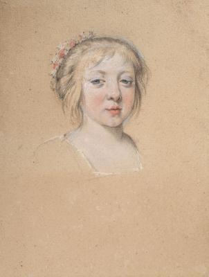 Cet exceptionnel portrait est celui d’Anne-Marie-Louise d’Orléans, cousine de Louis XIV, réalisé vers 1635. Le dessin est limité au buste de la jeune princesse, mais le trait virtuose, le soin porté au modelé et aux coloris donnent une présence particulière à ce visage à la fois charmant et sérieux. Vouet saisit l’essentiel de la psychologie du modèle, d’un manière directe et simple.