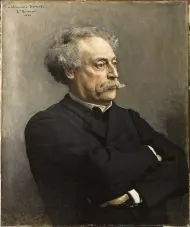 Le portrait d’Alexandre Dumas fils date de 1886. Fils du romancier Alexandre Dumas père (1802-1870), il connut également une grande carrière d’écrivain, notamment comme auteur de La Dame aux Camélias. Il est élu à l’Académie française en 1874. Son portrait a été légué par son épouse et envoyé à Versailles en 1935.