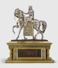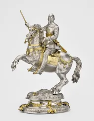 Le cheval est aussi l’animal nobiliaire par excellence. Depuis l’Ancien Régime sa seule présence dans les représentations marque le rang, définit les hiérarchies sociales, assoit le pouvoir. Animal politique, le cheval participe à la majesté des souverains. S’appuyant sur la référence aux saints et aux chevaliers, il participe également au processus de glorification faisant du roi-cavalier un héros légendaire.