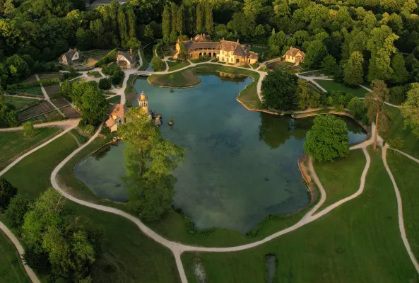 Marie-Antoinette aménage les jardins de Trianon en deux phases distinctes. La première, à partir de 1777, correspond à la création du Jardin anglais. Dans un second temps, en 1783, elle demande à Richard Mique d’étendre le jardin vers le nord en y bâtissant un village champêtre autour d’un nouveau lac.