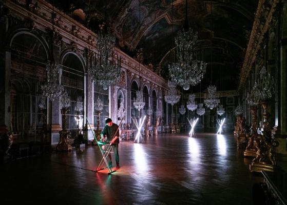 Lancée en 2019, la carte blanche électro du château de Versailles permet de mettre en lumière cet univers sonore unique grâce à des créations musicales totalement originales. Thylacine en 2019, Saycet en 2021, et Fakear en 2022 : tous ces artistes s'inspirent de Versailles et proposent leur propre réinterprétation musicale des lieux.