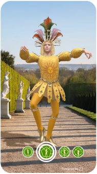 À chaque étape, les visiteurs débutent l’expérience avec la caméra frontale de leur smartphone, qui place virtuellement un accessoire d’époque sur leur tête. En basculant ensuite sur la caméra arrière, ils se découvrent