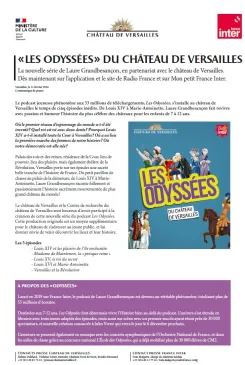 Le château de Versailles et le Centre de recherche du château de Versailles sont heureux d’avoir participé à la création de cette nouvelle série du podcast Les Odyssées. Cette production originale est un moyen supplémentaire pour le château de s’adresser au jeune public, et lui donner envie de venir découvrir les lieux et leur histoire.