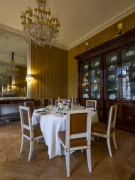 Au sous-sol, ce sont 800 m2 qui sont consacrés à des cuisines ultra-modernes pouvant servir un nombre important de convives lors de banquets officiels organisés dans la galerie des Cotelle.