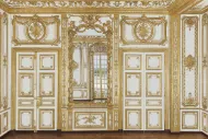 La dorure ancienne a été nettoyée et complétée, et la peinture à la colle en « blanc de Roi » reprise à l’identique selon les techniques du XVIIIe siècle. L’éclairage par des luminaires anciens, girandoles et bras de lumière a été également repensé afin de restituer l’atmosphère intime de la pièce. La restauration a été réalisée dans le respect des techniques traditionnelles par des artisans aux savoir-faire hautement spécialisés : maçonnerie, plâtrerie, électricité, menuiserie d’art, marbrerie, serrurerie et bronzerie d’art, peinture et dorure.