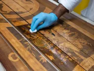 À l'occasion de cette opération de restauration, le secrétaire à cylindre a été confié au Centre de recherche et de restauration des musées de France (C2RMF) qui a effectué un nettoyage et un recollage des placages en bois satiné et des marqueteries soulevées. Une campagne globale de nettoyage des bronzes de ce bureau et des autres meubles présents dans la pièce, a également été menée.