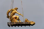 Lancement de la restauration : les treize sculptures en plomb sont déposées afin d'être acheminées à la Fonderie de Coubertin.