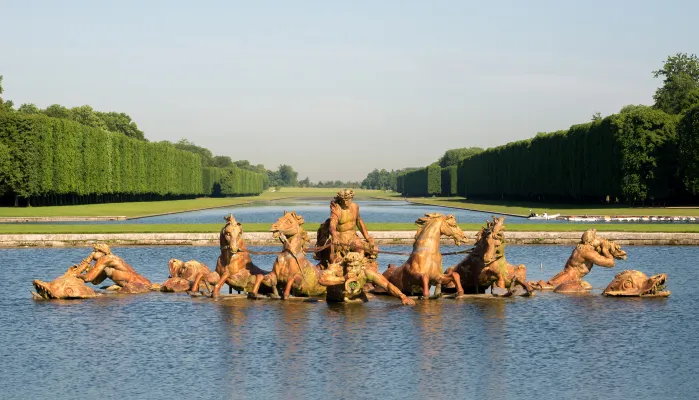 Situé au centre de la Grande Perspective, à l'extrémité de l'Allée royale allant du Château au Grand Canal, le bassin d'Apollon est sans doute l'un des bassins les plus célèbres des jardins de Versailles. Exécuté par Jean-Baptiste Tuby entre 1668 et 1670 au cœur du règne de Louis XIV et réalisé à la manufacture des Gobelins, le bassin est orné du groupe sculpté du char d'Apollon. Dans la signification allégorique et mythologique des jardins voulue par Louis XIV, ce bassin représente le lever du soleil.