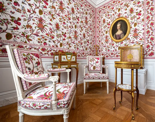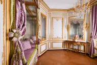 Derrière les lambris dorés et les tentures de soierie du grand appartement de la Reine se cache, sur deux étages, un ensemble de pièces aux dimensions modestes et dont les fenêtres donnent sur de petites cours intérieures. Il s'agit du petit appartement de la Reine, que Marie-Antoinette commence à aménager à partir de 1774.
